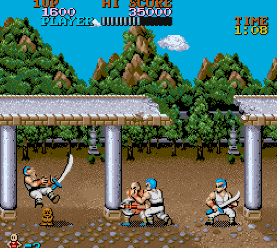 각 스테이지마다 보스가 존재하는 데 소림사를 배경으로 해서인지 대부분 당시 중국 무협 영화에서 볼 수 있었던 캐릭터들이 많이 등장합니다.