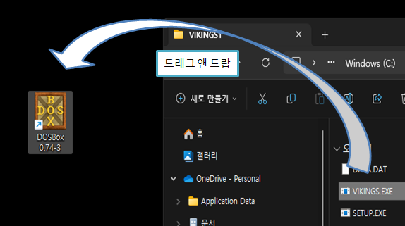 위 방법으로 드래그 앤 드롭을 DOSBox로 놓아주면 게임이 실행된다.